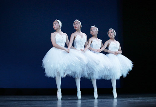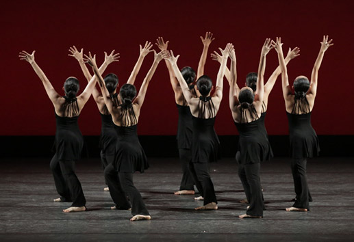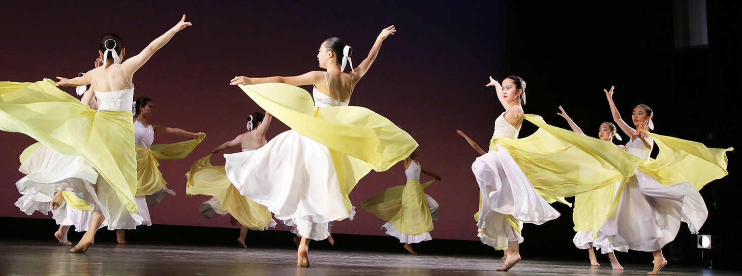 スタジオエミングでは、一人ひとりが踊りを生活の一部として、自由でのびのびと楽しめるように日々のレッスンを行っています。数年に一度、それまで創意工夫を重ねた成果を発表する場を設け、多くの方にご覧いただいています。